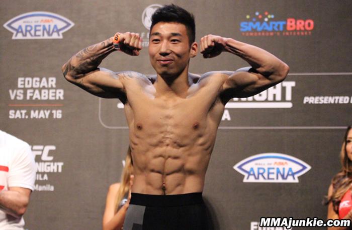 Zhuikui Yao Nolan Ticman Nolan Ticman and Zhuikui Yao Roldan Sangcha-an Jon Delos Reyes Jon Delos Reyes and Roldan Sangcha-an Royston Wee Ning Guangyou Ning Guangyou and Royston Wee Dhiego Lima Li Jingliang Li Jingliang and Dhiego Lima Kajan Johnson Lipeng Zhang Lipeng Zhang and Kajan Johnson Jon Tuck Tae Hyun Bang Tae Hyun Bang and Jon Tuck Levan Makashvili Mark Eddiva Mark Eddiva and Levan Makashvili Yui Chul Nam Phillipe Nover Phillipe Nover and Yui Chul Nam Neil Magny Hyun Gyu Lim Hyun Gyu Lim and Neil Magny Luke Barnatt Mark Munoz Mark Munoz and Luke Barnatt Costas Philippou Gegard Mousasi Gegard Mousasi and Costas Philippou Urijah Faber Frankie Edgar Frankie Edgar and Urijah Faber PASAY, Philippines – MMAjunkie was on scene for today’s UFC Fight Night 66 fighter weigh-ins. Check out our photo gallery of the festivities. The weigh-ins took place at SM Mall of Asia Arena in Pasay, Philippines, which also hosts Saturday’s FOX Sports 1-televised event For a full rundown of today’s proceedings, check out our UFC Fight Night 66 weigh-in results post.